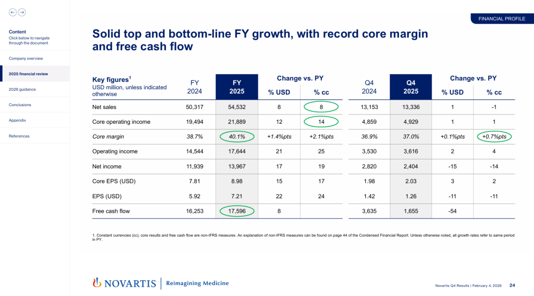 展望2026年,诺华预计净销售额将实现低个位数增长,核心营业收入预计将下降低个位数。