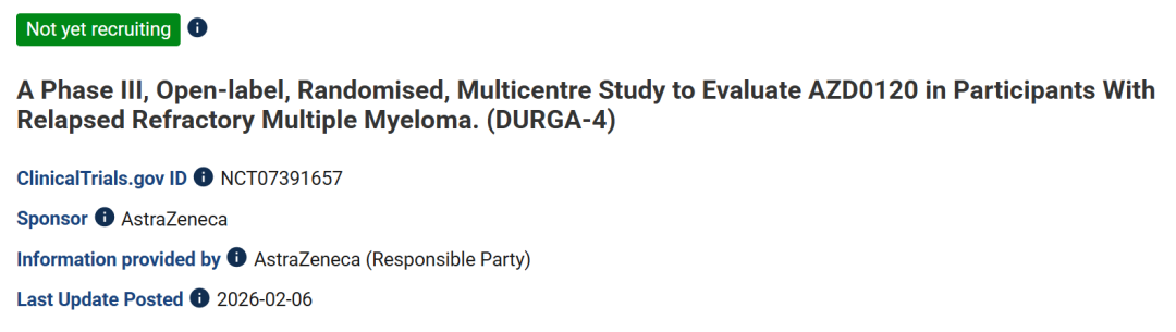 2月6日,美国临床试验收录网站显示,阿斯利康启动了AZD0120(GC012F)的首个III期临床试验(DURGA-4)。