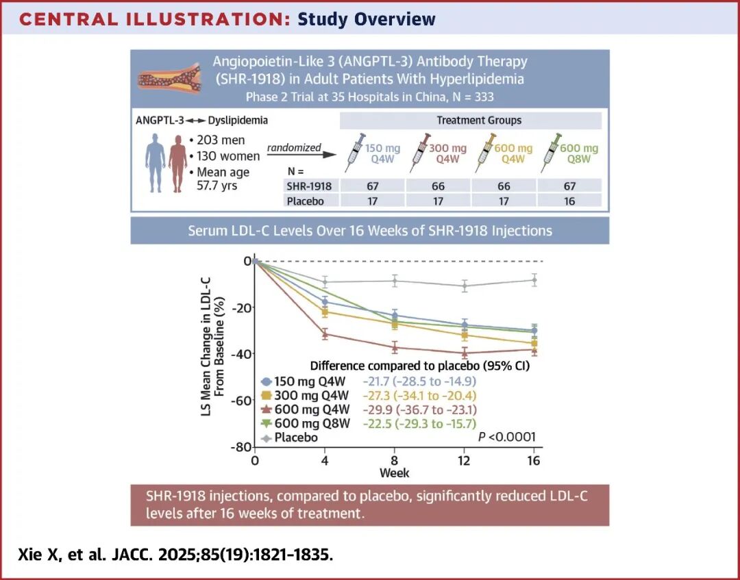 SHR-1918是恒瑞医药旗下子公司盛迪医药自主研发的一款ANGPTL3单抗,通过抑制ANGPTL3的活性来降低血清中的甘油三酯(TG)水平和低密度脂蛋白胆固醇(LDL-C)水平。LDL-C和TG是动脉粥样硬化性心血管疾病发生发展的重要风险因素。ANGPTL3在调节脂质代谢中扮演着重要角色,能够通过抑制脂蛋白酶和内皮脂肪酶,减少TG和LDL-C的清除。鉴于SHR-1918对罕见血脂异常疾病的治疗潜力,该药物已在2024年9月被CDE授予针对HoFH的突破性疗法资格,并在上个月被纳入优先审评。